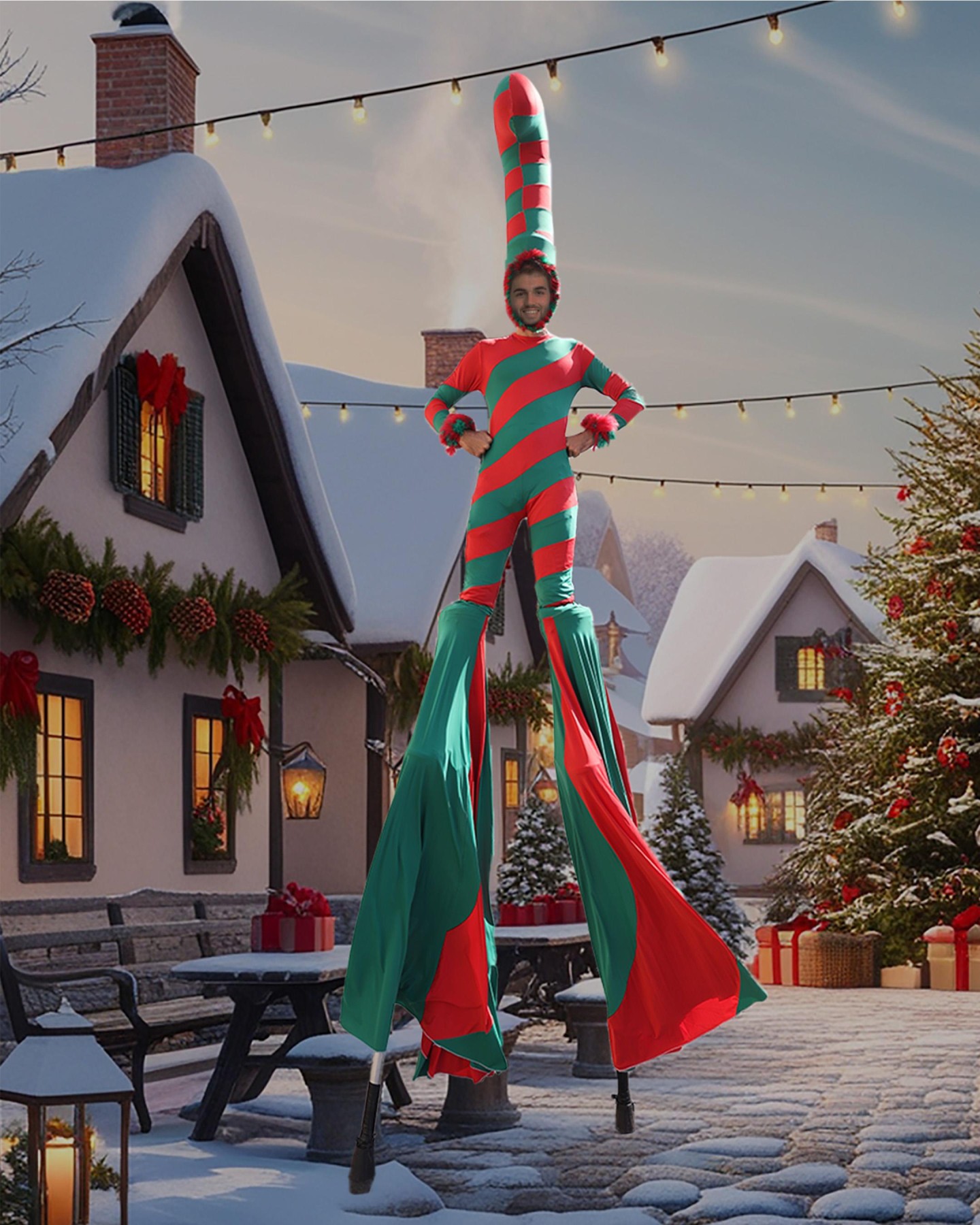 Candy Cane stilt walkers that are highly entertaining and sweet.