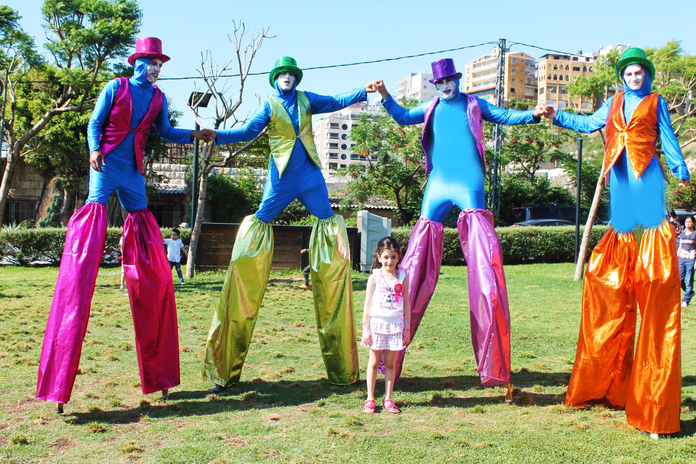The colorful mime stilt walkers are the perfect pop of color to add to any occasion.