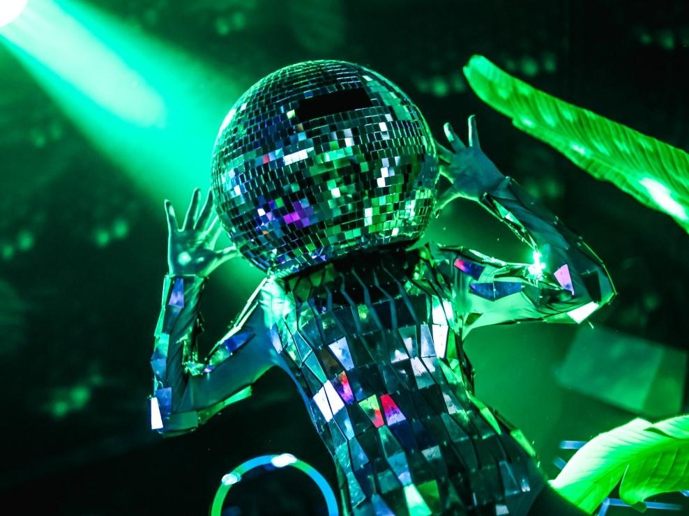 Walk around shiny disco ball models available for taking photos with guests or dancing on podiums.