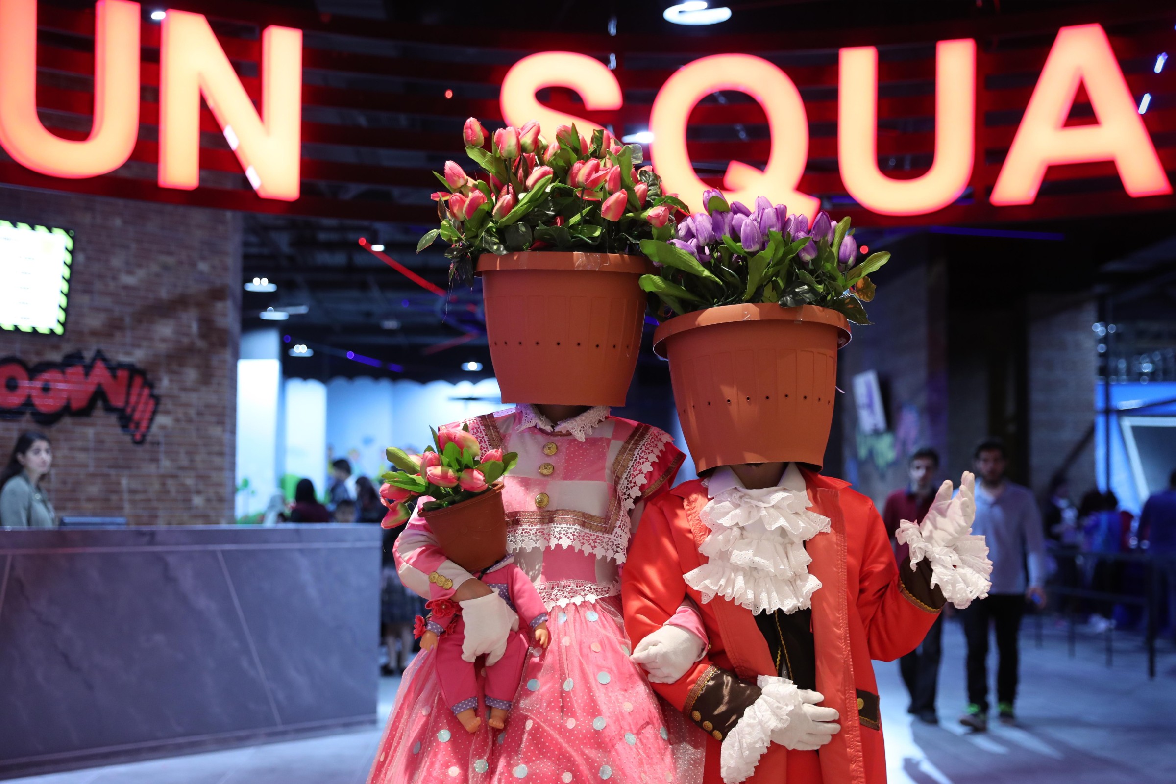 Mr. and Mrs. Pot, your not so typical real life walking flower pot couple.