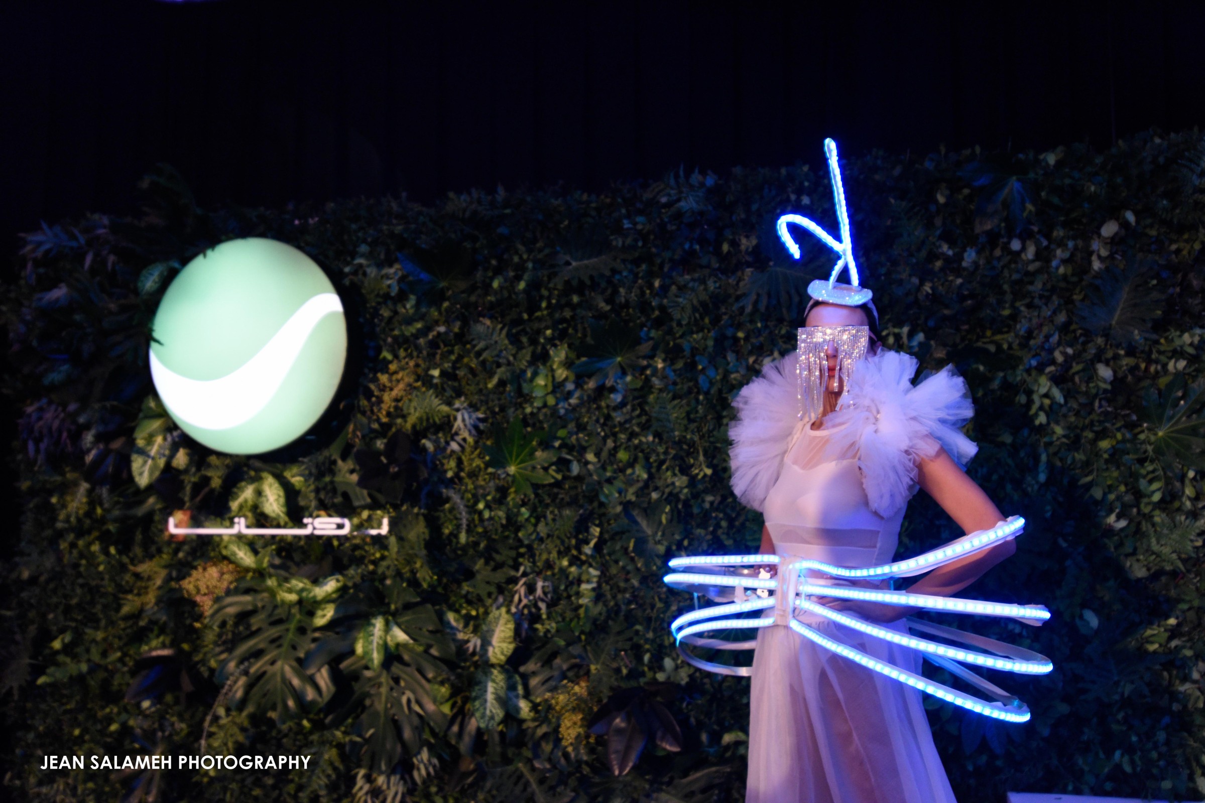 Female walk about models with incredible, unique LED costumes available to meet and greet guests or take photos with them.