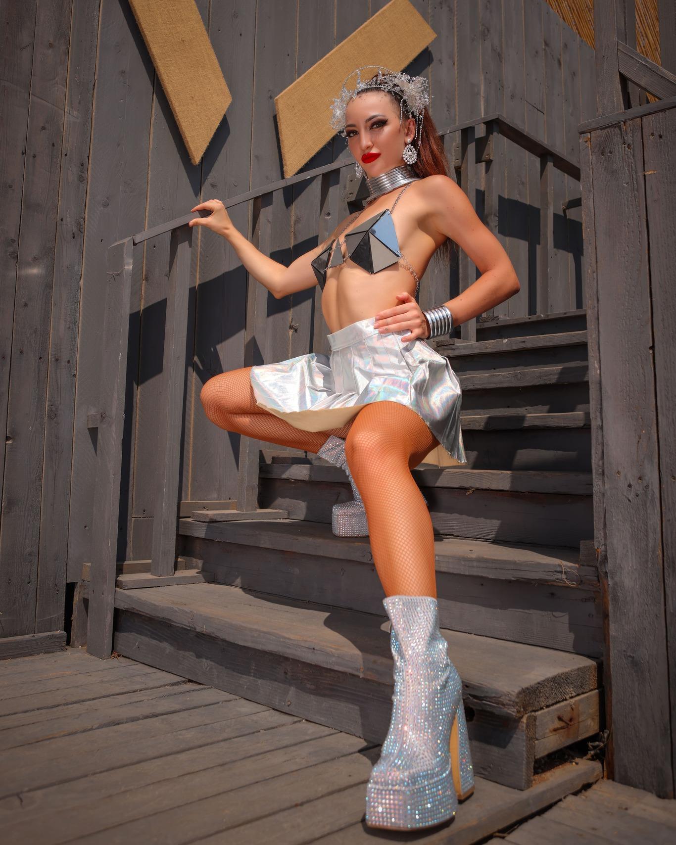 Metallic and space-aged dancers with perfect choreographies and freestyle dance routines.