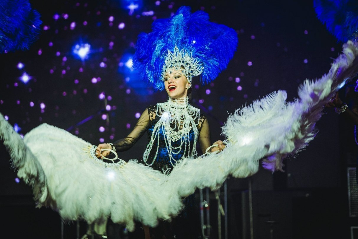 An attention grabbing spectacle with incredible feathered costumes and dazzling choreography, they will transport guests to a party in Las Vegas.