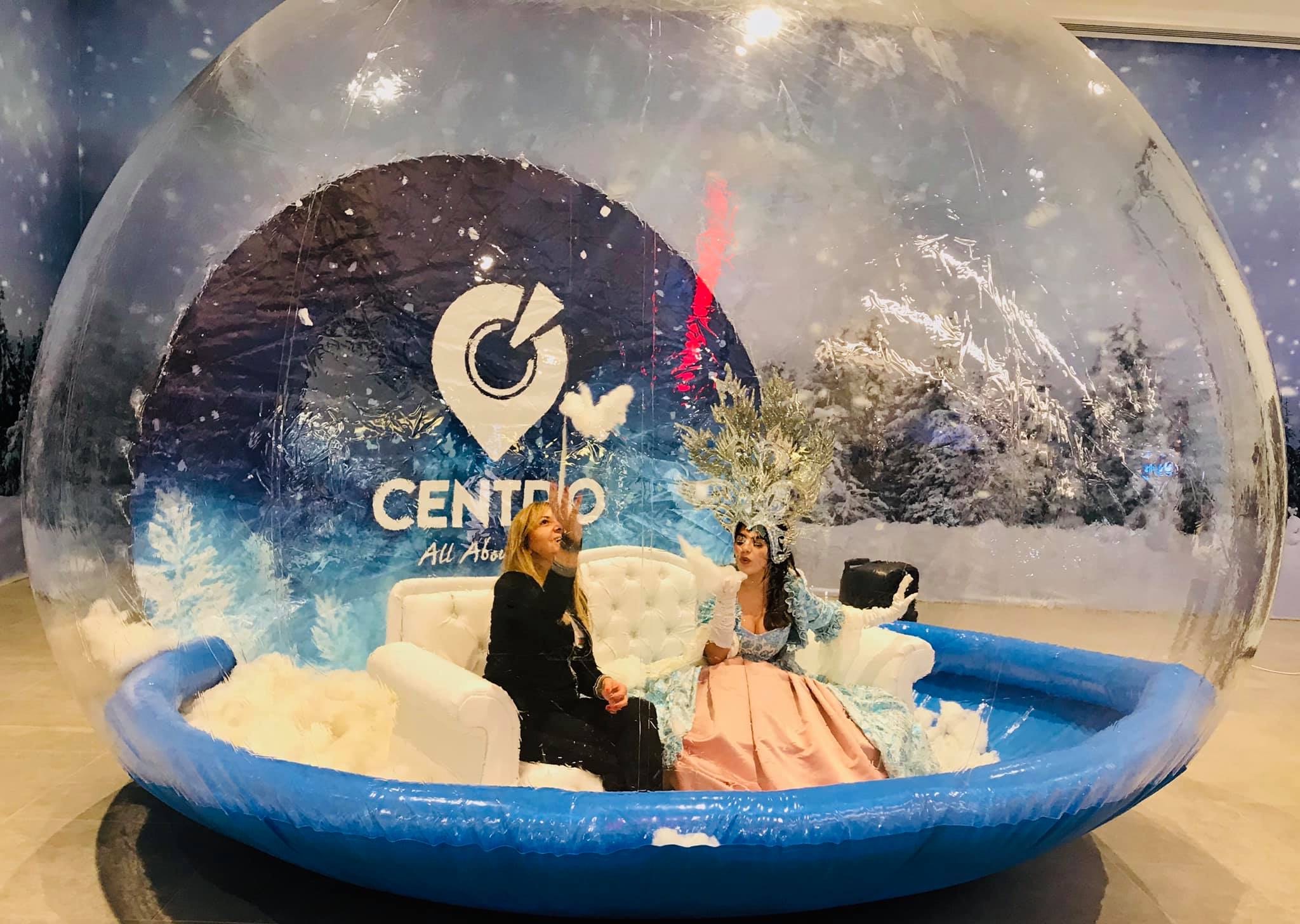 Stunning glass-like music globe with a stunning model inside and illuminations.