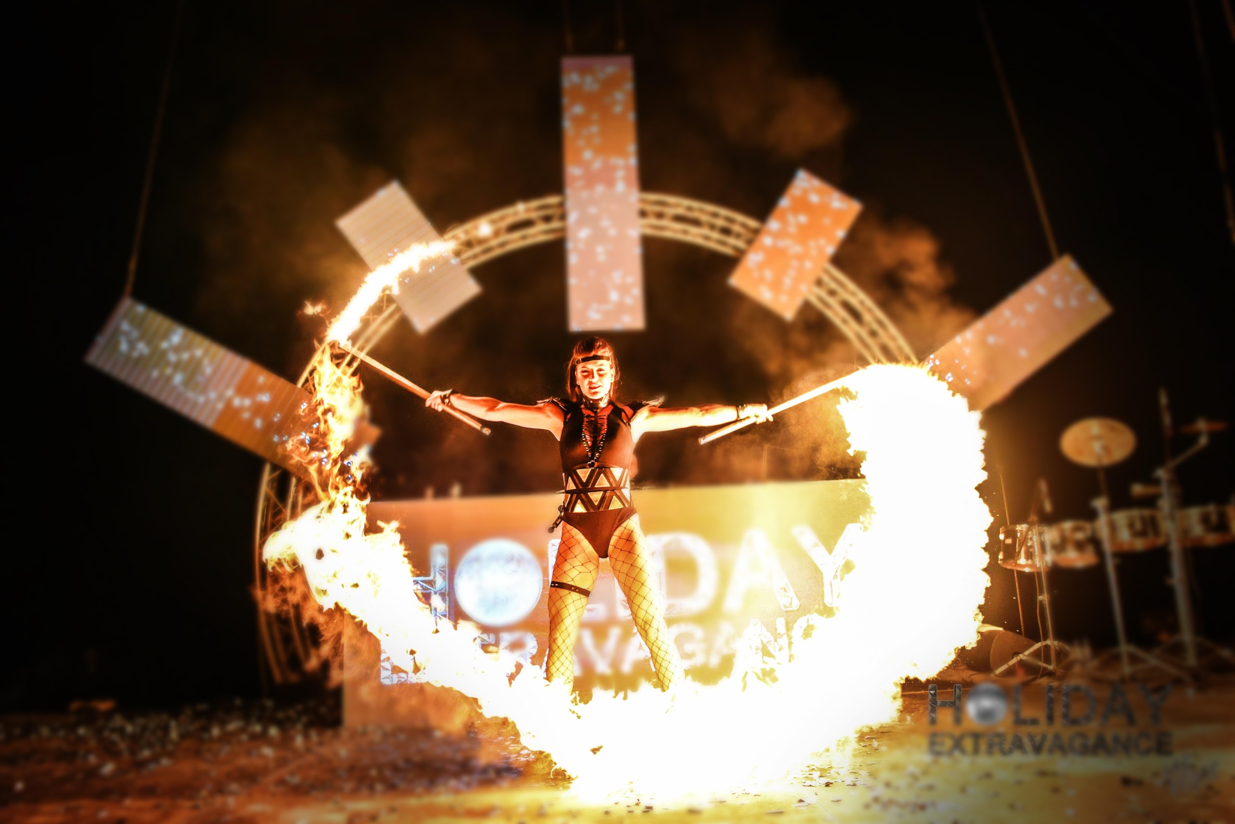 Their performances feature a variety of fire props such as fire sticks, fire poi, fire fans, fire whips, fire swords, fire hula hoop, fire breathing, sparkle fire, and even flame jet.