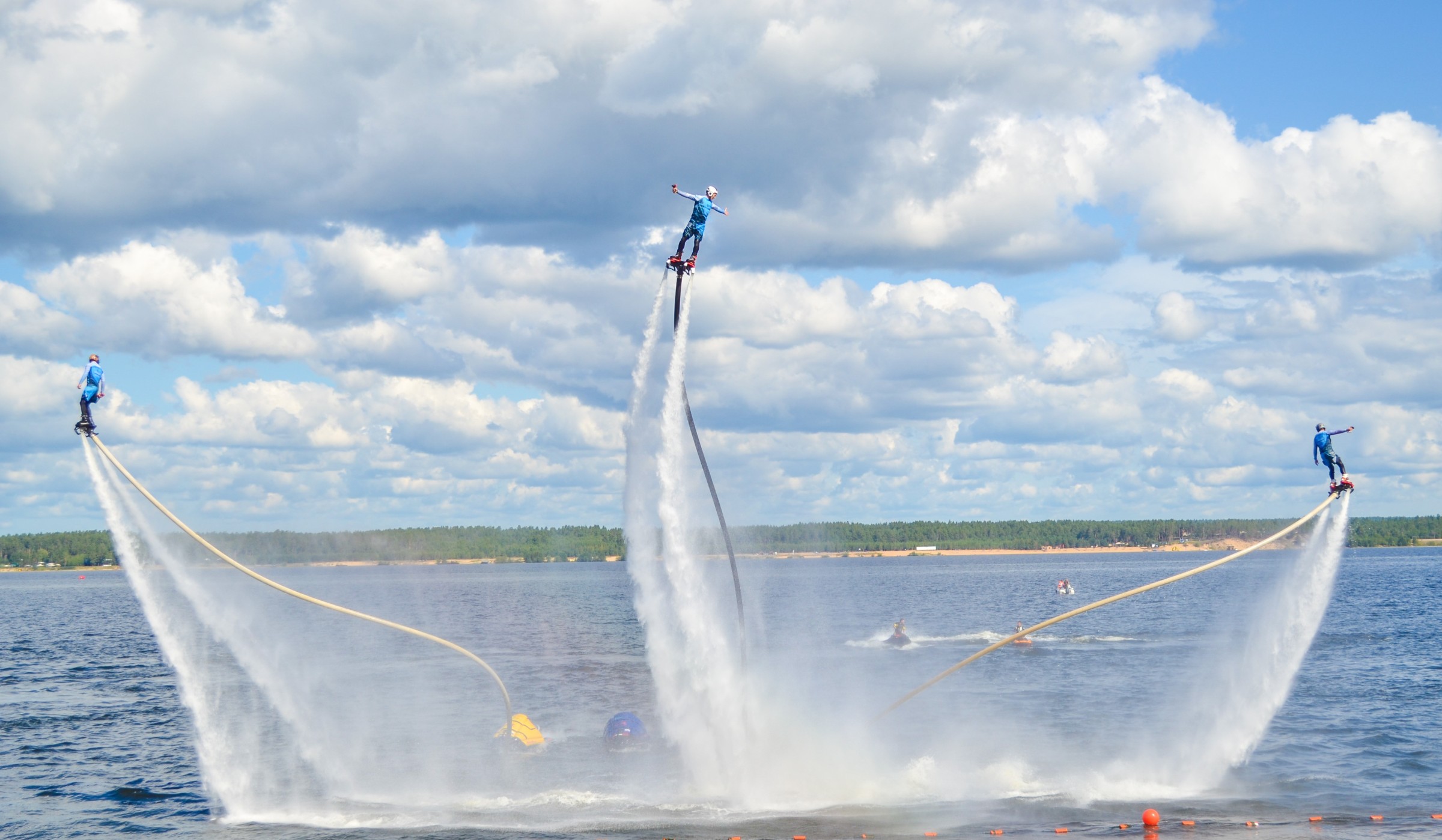 he Water Flyboard Show features impressive movements performed on flyboards, which are devices that allow the performer to fly above the water.