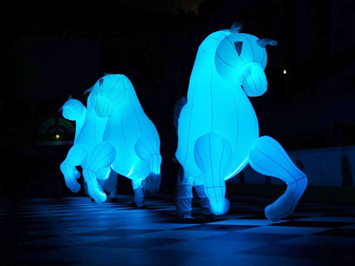As a walkaround act, the giant horse inflatable LED act allows the performer to interact directly with the audience.