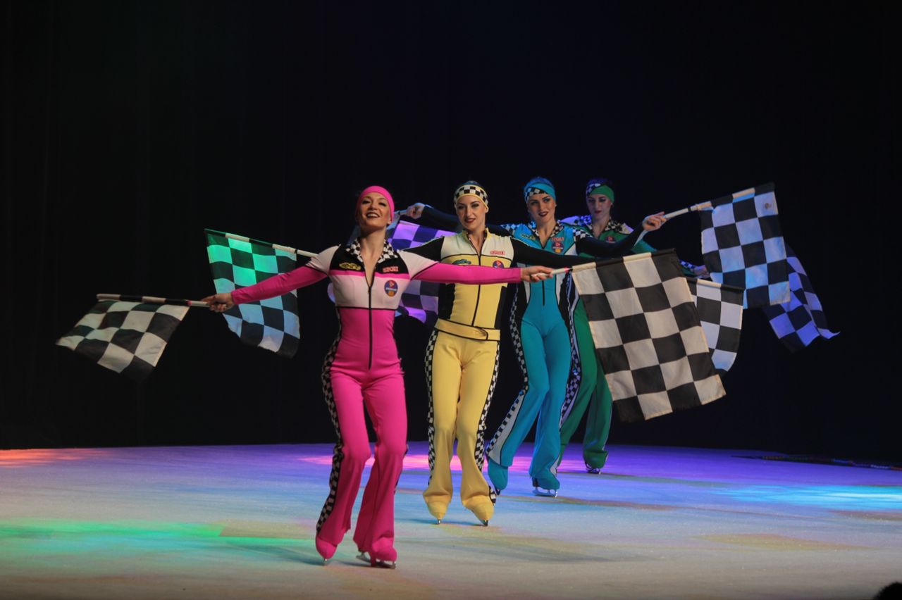 The racers are wearing themed costumes that fit the overall theme of the show, which could be anything from a winter wonderland to a futuristic space theme. These costumes add an element of fun and visual interest for the audience.