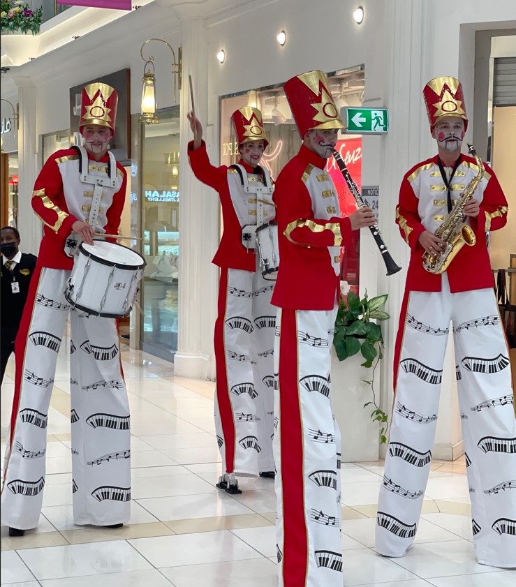 Band on Stilts is known for their unique performance style, which involves the band members playing instruments while walking on stilts.