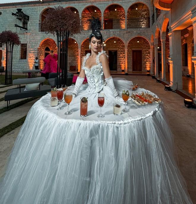Visually spectacular, our human living strolling tables are ready to serve your guests in a unique way.