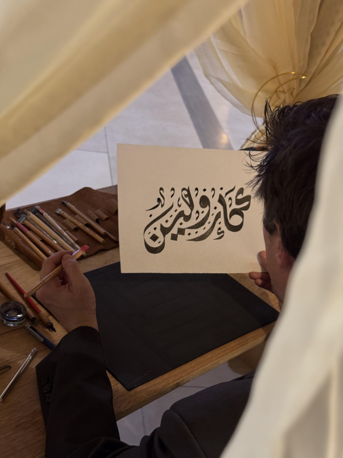 A live calligrapher adding a personal and elegant touch to every guest’s experience.