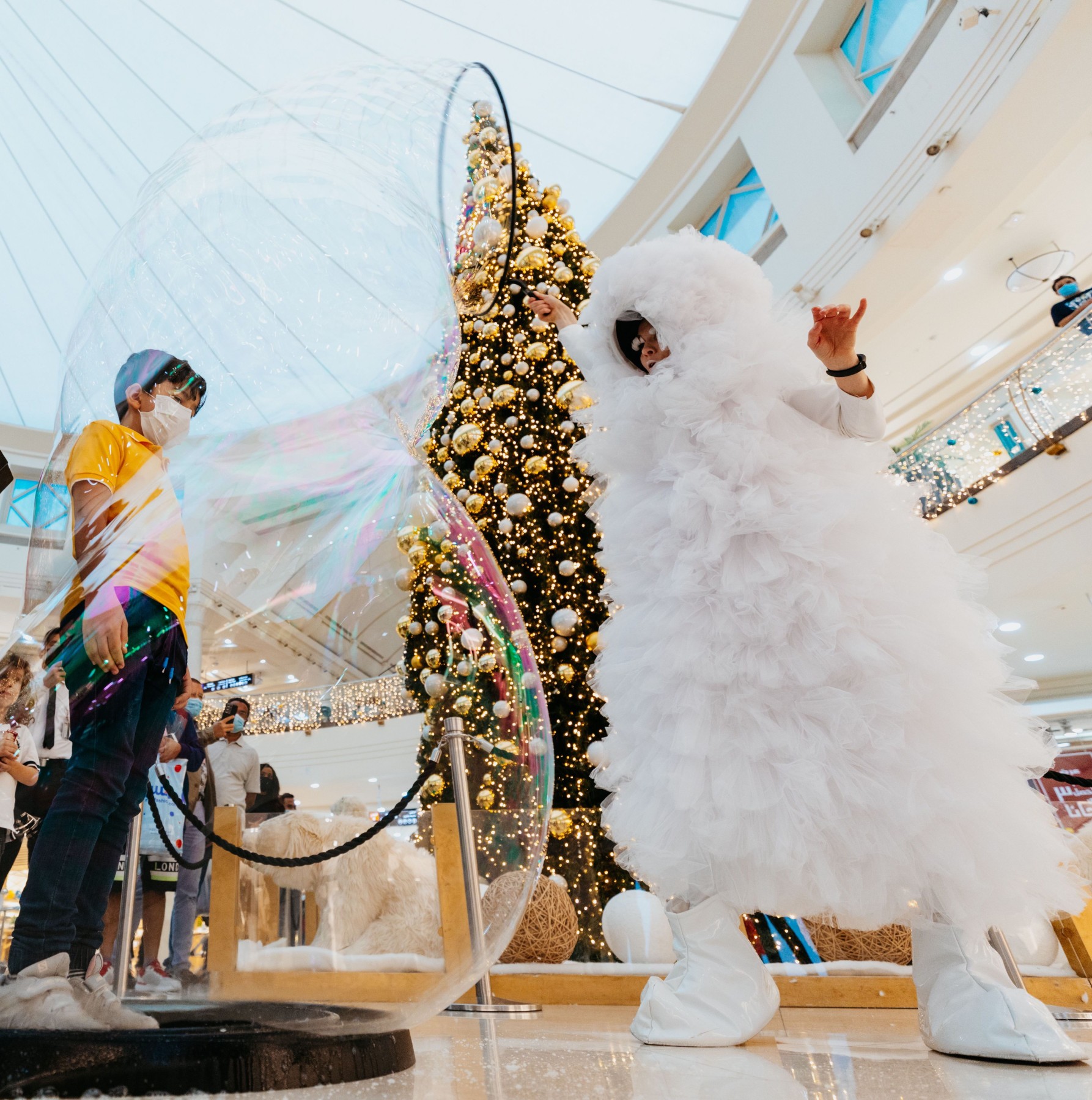 Ranges from colorful bubbles to smoke-filled bubbles to enormous bubbles that cover a whole person.